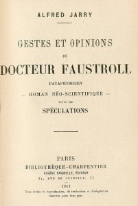 JARRY (Alfred). Gestes et opinions du docteur Faustroll, pataphysicien, roman néoscientifique, suivi de Spéculations. P., Fasquelle, 1911,