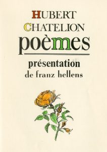 Voltaire présentées par Franz Hellens. Même édit., 1962, plaquette in-12, 22 p., br. Tiré à 51 ex. num. 1/11 vergé ancien./ CHATELION (Hubert). Poèmes. Présentation de Franz Hellens. Même édit., 1968, plaquette in-12, 16 p., br. Edit. orig. tirée à 51 ex. num. 1/11 Hollande./