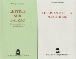 SIMENON (Georges). Le Roman policier n'existe pas. Brux., Les Amis de G. Simenon, 1998, plaquette in-12, en f., couv. imprimée. Tiré à 100 ex. num./ IDEM. Lettres sur Balzac. Correspondance avec André Jeannot. Même édit., 1994, plaquette in-12,...