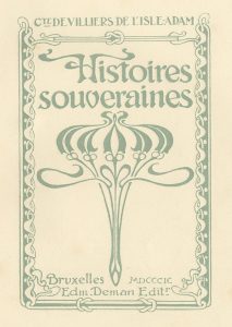 VAN RYSSELBERGHE.- VILLIERS DE l'ISLE-ADAM (Cte de). Histoires souveraines. [Ornementations de Théo Van Rysselberghe comprenant 60 en-têtes, lettrines, culs-de-lampe, et la couverture]. Brux., Edmond Deman, 1889,