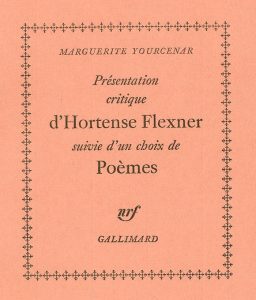 YOURCENAR (Marguerite). Présentation critique d'Hortense Flexner suivie d'un choix de poèmes. Edition bilingue traduite de l'américain par M. Yourcenar. P., NRF, 1969,