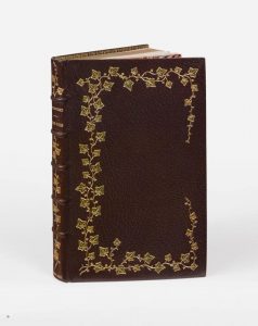 THEURIET (André). Sous bois. Paris, Conquet, Charpentier, 1883. In-8, maroquin brun, guirlande de lierre dorée aux feuilles de maroquin vert mosaïqué, dos orné de même, en mosaïque de maroquin orangé, dentelle intérieure dorée, tranches...