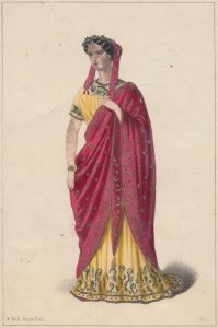 Rare catalogue des objets mobiliers dépendant de la succession de l'illustre tragédienne, tels que linge, garde-robe, guipures et dentelles à l’usage personnel, vins fins, porcelaines, objets d’art et de curiosité, bronzes et objets divers, argenterie, bijoux, diamants, bijoux et costumes de théâtre, bibliothèque, meubles, etc. Le catalogue de sa bibliothèque littéraire et dramatique occupe les pp. 47-78, avec 288 lots décrits, qui furent dispersés les 26 et 27 avril par Auguste Aubry. # Exemplaire enrichi d'un portrait lithographié et rehaussé en couleurs de Rachel en Valéria. # Dos légèrement plus sombre, petites taches au titre.