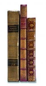 2 tomes en 1 vol. in-folio (382x280 mm) ; maroquin rouge, triple filet doré en encadrement sur les plats. Dos à nerfs orné. Double filet sur les coupes. Tête dorée. Dentelle intérieure. Couvertures conservées.
