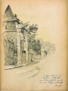 Montmartre : Moulin de la Galette (2 vues) mars 27. Rue Cortot à Montmartre (2 vues) mai 27. Impasse Trainée mai 27. angle rue Marcadet et Mont-Cenis juin 27. le bas de la rue Cortot et angle rue des Saules juin 27. le manoir de Gabrielle d’Estrée vu de la rue des Saules septembre 27. Le Lapin Agile rue des Saules (2 vues) septembre 27. La rue Cortot, septembre 27. Rue Cortot (1 vue et angle Mont-Cenis, démolition et transformation, 2 vues) janvier 28.