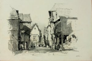 La Chaise-Dieu. Dessin représentant l’entrée de l’église de La Chaise-Dieu et des maisons alentours circa1840 (230/150mm)........................................ 150/200€