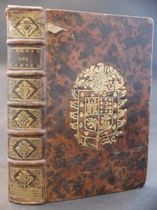1 volume In-8° - Reliure de l’époque veau brun marbré aux armes de Rodrigue Chaslon-de-Cretot (petit manque de cuir au 1er plat) - Dos à nerfs orné (accroc en coiffe supérieure, coiffe inférieure élimée) - Pièce de titre maroquin brun - Gardes annotées - Cachet de la bibliothèque du château des Guerrots - Tranches rouges mouchetées.