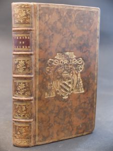 Reliure de l’époque veau fauve marbré aux plats ornés d’un double filet et des armes dorées de Louis-François Néel de Christot, évêque de Séez (légères dédorures) - Dos à nerfs orné - Pièce de titre maroquin bordeaux - Tranches rouges - Cachet de la bibliothèque du château des Guerrots - Bon exemplaire.