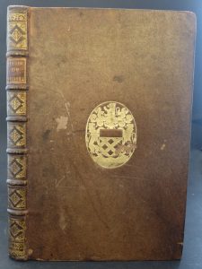 1 volume In-Folio - Frontispice, vignettes in texte et 18 planches hors texte - Reliure de l’époque veau brun (légèrement épidermée, rayures et 1 tache brune au 2nd plat) ornée d’armes dorées aux centres des plats (celles-ci épidermées, non identifiées) - Dos à nerfs orné - Pièce de titre maroquin brun - Nombreux feuillets brunis - Tranches rouges - Ex-libris et cachets répétés de la bibliothèque du château des Guerrots.