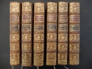 6 volumes In-8° - Reliure de l’époque veau fauve moucheté - Dos à nerfs joliment ornés - Pièces de titre maroquin bordeaux, pièces de tomaison maroquin vert - De légères épidermures, petits manques de cuir à quelques plats - Tranches rouges - 1 pâle mouillure en marge externe du tome VI - Quelques coins frottés - Ex-libris ayant été recouvert d’un papier blanc à chaque tome - Bon exemplaire malgré les légers défauts signalés.