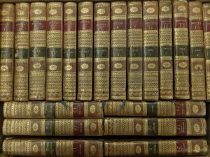 38 volumes In-8° - Bien complet de ses 40 frontispices gravés, de ses 42 jolies eaux-fortes d’après Moreau, de ses 13 planches dépliantes de partition, et de ses 44 planches de botanique en couleurs rehaussées à l’aquarelle avec texte en regard, marges un peu courtes pour celles-ci (portrait en buste manquant) - Reliure de l’époque très décorative veau havane marbré (de rares manques de cuir à certains plats, de menus défauts) - Dos lisses richement ornés (petits accidents à certaines coiffes) - Pièces de titre et de tomaison maroquin bordeaux et vert olive - Roulette dorée encadrant les plats - Tranches jaunes mouchetées de rouge - Ancien ex-libris (Délu) sous forme d’étiquette manuscrite répété contrecollé aux versos des 1ers plats - Bel intérieur, bel ensemble.