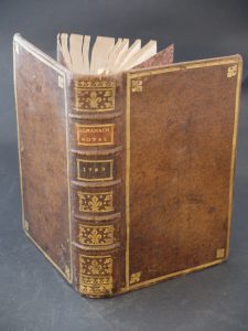 1 volume In-8° - Frontispice gravé, 693 pages - Reliure de l'époque veau moucheté - Plats encadrés d'un triple filet or et fleurdelisés aux coins - Dos à nerfs orné et fleurdelisé or - Pièces de titre maroquin fauve et brun - Jolies gardes décorées de motifs floraux roses sur fond or - Tranches dorées - Très bon intérieur - Bon exemplaire.