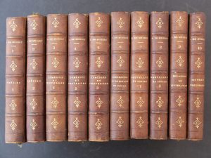10 volumes In-18°- Portrait frontispice et illustrations photographiées contrecollées hors texte - Agréable reliure de l’époque veau havane à coins - Dos à nerfs ornés, tomés et titrés or - Coins et quelques coupes usés, 1 petite fente à 1 mors - Quelques rousseurs éparses, quelques cahiers rehaussés - Têtes dorées.