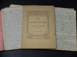 REGIONALISME DONT NORMANDIE. André-Paul LEROUX - MANUSCRIT AUTOGRAPHE : « Visite d’un maître en œuvres à l’abbaye de Fécamp au XVIème siècle »,