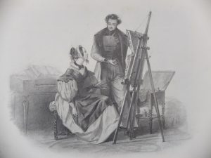 La plupart des documents In-8°, certains In-12°, contrecollés sur des feuillets d’1 volume grand In-4° oblong - Avec notamment : scènes animées, bâtiments, portraits, paysages, costumes, … - Reliure maroquin marine à long grain muette ornée de motifs à froid (épidermures, rayures, 1er mors et 1ère charnière fendus, coupes frottées, coins usés) - Dos à nerfs orné (coiffes manquantes) - Quelques rousseurs et salissures intérieures - D’autres dessins, gravures et photos séparés y ont été ajoutés - Tranches dorées.
