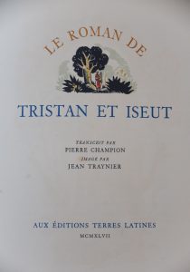 Le roman de Tristan et Iseut - Transcrit par Pierre Champion - Imagé par Jean Traynier - Sans lieu ; Aux Editions Terres Latines, 1947 -