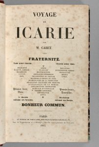 Le Voyage en Icarie est un roman utopique qui a connu une fortune singulière. Il a été pris au pied de la lettre et il a inspiré un tel enthousiasme que des hommes et des femmes par milliers ont pris le nom d’Icariens, embrassé la doctrine communautaire de Cabet, versé leurs économies pour aider à fonder Icarie et soutenir financièrement pendant cinquante ans cette entreprise ; enfin, en 1849, plusieurs centaines de citoyens ont tout quitté pour aller bâtir aux États-Unis la société idéale imaginée par Cabet (Francis et Gonthier, Partons pour Icarie, p. 14).