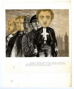 TAPUSCRIT ORIGINAL comportant au recto de chaque feuillet un court texte tapé à la machine et un ou plusieurs collages, utilisant des gravures du XIXe siècle.