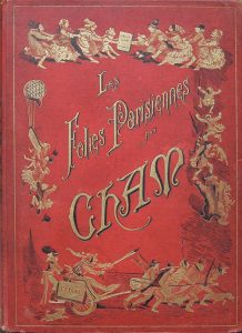 [Noé]. Cham (Amédée de Noé dit). Les Folies Parisiennes. Quinze années co-miques. 1864-1879. Paris, Calmann-Lévy, s. d. In-folio, cartonnage éditeur percaline rouge à décor or et noir au dos et sur les plats. Petits accrocs aux coiffes et...