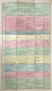 Dion (Comte de). Tableau de l’Histoire Universelle, en vers français. 4e édition. Paris, Constant Le Tellier et chez Brunot, 1826. In-8, reliure moderne demi-chagrin grenat, dos à 4 nerfs orné. 83 pp. et deux tableaux dépliants rehaussés en...