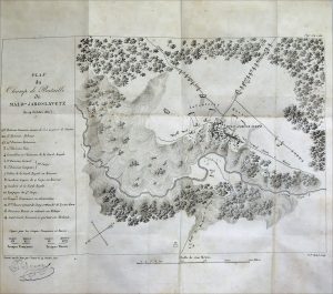 Campagne. Quatrième édition corrigée et augmentée. Paris, Panckoucke, février 1815. In-8, reliure basane fauve marbrée, dos lisse orné. Un trou de ver en tête. viii-454 pp. et deux plans de bataille dépliants. Page de titre renforcée, manque un f. (p. 3-4) remplacé par un f. blanc. Qq. rousseurs. L'originale est parue un an plus tôt.