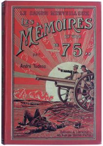 Tudesq (André). Les Mémoires d’un « 75 ». Le Canon merveilleux. Illustrations de Louis Comte. Paris, Éditions et Librairie, 1914. In-4, cartonnage éditeur percaline rouge à décor noir et or au dos et sur le plat supérieur (plaque de...