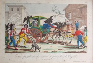 Napoléon. Entrée Triomphante des Oiseaux de Proies dans la Capitale. Le 20 Mars 1815. Comparai-son du 8 juillet 1815. 1815. Eau-forte satirique (26 x 38,2 cm à la vue) rehaussée en couleurs. Qq. rousseurs. Encadrée. Estampe illustrant la «...