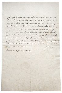 Beauharnais (Hortense de, 1783- 1837). Reine de Hollande, Duchesse de Saint-Leu, fille de Joséphine de Beauharnais. L.A.S. Rome, 7 janvier 1825. Une demi-page in-8, signée Hortense, adressée de Rome à une femme qu’elle se réjouit de revoir :...