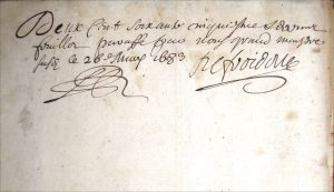 annoncés mais man- quent les ff. 4, 5, 6; pas de ff. 133 à 138 : erreur de pagination car les cahiers semblent suivis et complets; pas de p. 245 mais sans manque. Traces de mouillure importante en début d'ouvrage avec cernes gris jusqu'au f. 40, petite galerie de vers marginale. Différentes écritures toutes lisibles. Registre contenant la réformation générale des Eaux et Forets de la Basse Navarre composé de 265 feuillets paraphés par Louis de Froidour Escuyer seigneur de Sérizy Conseiller du Roy Maistre enquesteur commissaire député pour la réformation délégué pour la Réformation générale des Eaux et Forêts des pays de Bearn, Basse Navarre, Soule et Labourd 1683 au siège de Toulouse. Page 116 : Procès Verbal de Visitation des bois forestier et Montagnes du Royaume de Navarre. Page 1 82 : Jugements rendus en procédant à la Réfor- mation des forests de Basse Navarre. Page 253 : Arrest du Conseil d'Etat du 1 7 juillet 1 677. Le dernier feuillet, signé par Froidour, est daté 26 mai 1 683. Louis de Froidour (1 625-1 685), proche de Colbert, fut nommé commissaire réformateur en mars 1 666. Suite aux usurpations, défriche- ments et mauvais état général des forêts, il avait été décidé de contôler les arpentages, défrichements et dégradations des forêts françaises et d'en recenser les essences. Froidour à joué un rôle primordial pour le sauve- tage de la forêt pyrénéenne.