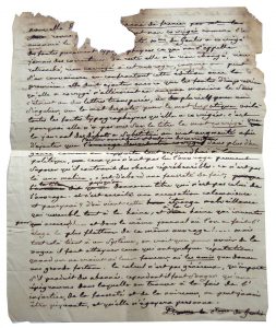 manque touchant plusieurs lignes en-tête. Texte autographe de Madame de Genlis à propos de sa nouvelle historique Jeanne de France dont la première édition est parue en 1816. Le Comte de Valence avait épousé en 1784 Pulchérie de Genlis, fille cadette de la comtesse de Genlis.