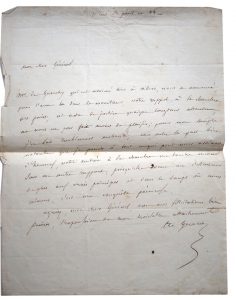 lu dans le Moniteur votre rapport à la Chambre des Pairs; cet acte de justice quoique longtemps attendu ne nous en a pas fait moins de plaisir; pour mon compte j'en suis doublement enchanté .Agréez, mon cher Général, avec mes félicitations bien sincères, l'ex- pression de mon inviolable attachement. Gerard On joint : LALLY-TOLLENDAL (Tro- phime-Gérard, marquis de, 1751 - 1830). Homme politique et homme de lettres français. Billet à l'encre noire, adressé au Comte de Valence : Pardonnez moi d'être paresseux le matin parce que je veille beaucoup; mais ne me croyez pas ingrat ni matin, ni soir. Je vous remercie de vos remarques pleines de justesse comme d'amité. haute considération vieille amitié tout les sentimens de votre jeunesse agréez tout cela. Lally T.