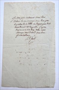 signée gl Valence. Manque la moitié de la lettre : Je vous écris cher ami un mot d'Ighoum. de Lithuanie. de la rivière Bérésina entre . et Bo- bruysk : les marches . que l'Empereur a fait faire. l'armée ont séparé le corps . et Volhynie dont . em- pêchons la jonction. Le . Prince d'Eckmühl com- mande. d'armée dont je fais partie. . Je me porte d'ailleurs très bien et l'armée n'a pas de malades. Je vous embrasse . • Deux billets a. s. au général Valence d'un écrivain (signature illisible). • Je vous préviens mon cher valence que le 1^ ^o/^^ ^ ^ ^^o^^ ^^/o^ est deja imprimé, je corrige le second et je serais bien aise d'avoir vos notes pour la campagne de Champagne, quand au 3^ ^ ^o^ dans le Moniteur me suffit. . • Je vous prie instament mon cher Valence de me renvoyer mon livre par le porteur de ce billet. Ne l'ayant pas tout mon travail est suspendu . • L.A.S. adressée au général de Valence, Quevrechin le 16 avril 1792. Une p. in-8, signée Votre tres affectionné Charles : J'ai reçu mon général la lettre que vous vous êtes donné la peine de mécrire de Bruxelles en datte du 15 de ce mois pour me remercier des attentions que j'ai eu pour vous pendant le court sejour que vous avez fait à Mons. • On joint trois lettres non identifiées adressées au général de Valence et une copie d'une lettre de Chateaubriand.
