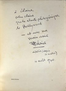 Bel envoi de Cendrars en page de garde : à Claire plus claire que la clarté photogénique de Hollywood - et avec ma main amie.