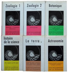 Pléiade. Encyclopédie de la Pléiade. Six volumes : La Terre. 1959. Astronomie. 1962. Histoire de la Science. 1957. Botanique. 1960. Zoologie. T. 1 : Généralités - Protozoaires - Metazoaires. T. 2 : Arthropodes. 1963. 6 volumes avec jaquette,...