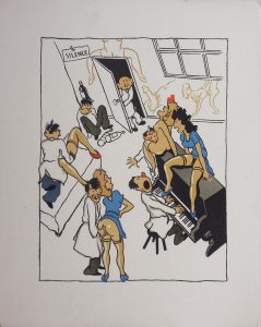 Anonyme. Chansons de Salle de Garde. S. l., aux dépens d’un amateur, 1948. In-4, en feuillets, sous emboîtage éditeur. Non paginé. Recueil de 38 chansons de salles de garde avec un frontispice et des lettrines illustrées. Tirage à 950 ex....