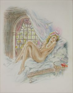 Curiosa. Réunion de deux ouvrages : • Cleland (John) : Mémoires de Fanny Hill. Compositions en couleurs de Edouard Chimot. Ed. Deux-Rives, 1954. In-8, en ff., chemise (dos défraîchi), sans étui. Tiré à 975 ex. numérotés dont celui-ci, un...