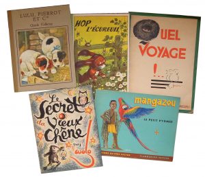 1934. In-4, agrafé. Illustrations en couleurs par H. de Costier. • Anonyme. Hop l'Écureuil. Paris, Omnium, s. d. In-8, cartonnage éditeur. 12 pp. en couleurs. • VALLEREY (Gisèle). Lulu, Pierrot et Cie. Paris, Nathan, 1935. Petit in-4, cartonnage éditeur illustré. Illustrations de A. E. Kennedy et B. Butler en noir et en couleurs hors texte. Bon état. • WOLO. Le Secret du Vieux Chêne. Paris, Arthaud, 1947. In-8, cartonnage éditeur, jaquette illustrée. Bon état.