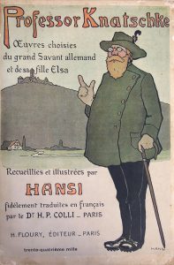 Hansi. Professor Knatschké. Œuvres choisies du grand Savant allemand et de sa fille Elsa. Paris, Floury, 1914. In-8, broché. Couverture illustrée en couleurs. Petit manque dans l'an- gle inférieur. 140-(7) pp. Qq. rousseurs. Illustrations en...