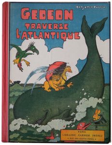 Rabier (Benjamin). Gedeon traverse l’Atlantique. Paris, Garnier frères, s. d. (1933). In-4, cartonnage éditeur demi-toile rouge. Petites usures aux coins. 48 pp. Traces de doigt en marges. Édition originale, bon exemplaire.