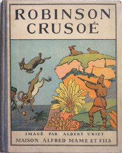 [Uriet]. De Foé (Daniel). Robin-son Crusoé. Imagé par Albert Uriet. Adapta-tion de Joseph Groussin. Tours, Mame, s. d. In-4, cartonnage éditeur demi-toile grise, plats illustrés. Coins émoussés. Fronstispice, 126 pp. et 16 planches hors texte...