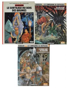 Bourgeon (François). Les Compagnons du Crépuscule. 1. Le sortilège du Bois des Brumes. Casterman, 1984. Album car-tonné. 2. Les yeux d’étain de la ville glauque. Casterman, Coll. stu-dio (asuivre), 1986. Album souple, bon état. 3. Le dernier...