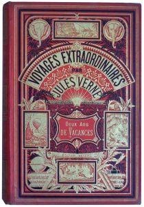 Verne (Jules). Deux Ans de Vacances. 91 dessins par Benett et une carte en couleurs. Paris, Hetzel, s. d. (1888). Grand in-8, cartonnage éditeur percaline rouge type « aux deux éléphants ». Percaline légèrement salie, minuscule accroc sur le...