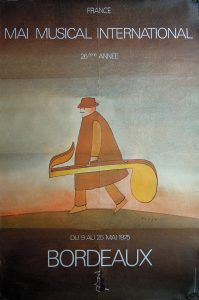 Folon. Mai Musical International. Bordeaux. 26e Année. Du 9 au 25 Mai 1975. D10 Publicité Promotion Bx Latresse. 116 x 75 cm. Plis marqués. Entoilée.