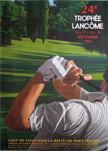 [Golf]. Schlosser. 24e Trophée Lancôme. 16-17-18- 19 septembre 1993. Saint-Nom-la-Bretèche. Point Rouge. 82,5 x 59,5 cm. Minimes pliures en bas à gauche. Très bon état.