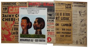 Combat Muhammad Ali-Ken Morton. Affiche signée Luigi Castiglioni. 52 x 40 cm (déchirures). • Catch. 19 sept. 1958. Corn-Chéri Bibi. 60 x 40 cm. Bon état. • Catch. 22 mai 1959. Le Bourreau-Vandooren. 60 x 40 cm. Bon état. • Catch. 6 avril ? Le Bourreau de Bethune-Gilbert Leduc. 60 x 40 cm. • Football. 27 mai 1959. Grand Match de Football et de propagande. Racing Club de Paris-Union Argenteuillaise. 80 x 60 cm. • Football. 21 sept. (1958 ?). Coupe de France. La Courneuve D. H. contre R. C. Levallois. 80 x 60 cm. Petites déchirures. • Moto-Ball. 27 juillet 1958. Championnat de France. 60 x 40 cm. • Moto-Cross. 14 sept. ? Coupe d'Europe et Coupe de Paris. Illus-tration de Geo Ham. 60 x 40 cm. (2 exemplaires). • Tauromachie. 22 juin 1958. Toros en St-Sever. 90 x 45 cm. Qq. pliures. • Association Sportive du Ministère de l'Intérieur. 1958. Illustrations par R. Antoine. 64 x 49 cm.