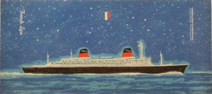 Bouvard (René, 1910-2008). Compagnie Générale Transatlan-tique. French Line. S. l., s. d. (1962). 20,5 x 45,5 cm. Infime pliure dans un angle. Affichette en bel état représentant le France sous un ciel étoilé.