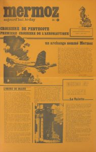 Croisières Paquet. Mermoz. 1976-1983. Réunion de numéros du journal distribué quotidien-nement à bord du paquebot Mermoz intitulé Mermoz aujourd’hui. to day. Grand feuillet de couleur imprimé recto-verso, on ytrouve la description des...