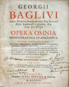Baglivi (Giorgio). Opera Omnia Medico-Practica et Anatomica. Editio accuratissima. Lugduni (Lyon), Pierre Bruyset, 1745. In-4, reliure de l’époque veau brun, dos à 5 nerfs orné, pièce de titre maroquin bordeaux. Légers frottements. Frontispice...
