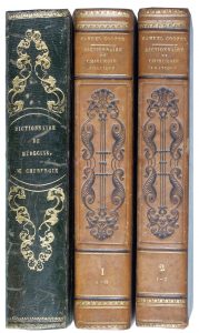 de chirurgie anciens et modernes qui forme une bibliographie chirurgicale. Traduit de l'Anglais sur la 5e édition. Paris, Crevot, 1826. 2 volumes in-8, reliure de l'époque demi-veau chamois, dos lisse orné d'un grand fer estampé à froid et de roulettes dorées. T. 1 : viii-682 pp. T. 2 : (4)-623 pp. Qq. rousseurs. Texte sur deux colonnes. Première édition française. Bon exemplaire. On joint : NYSTEN (P. H.). Dictionnaire de Médecine, de Chirurgie, de Pharmacie, des sciences accessoires et de l'art vétérinaire. 7e édition augmentée de plus d'un quart et ornée d'un grand nombre de figures d'anatomie, de chirurgie, etc. par Bricheteau, O. Henry et Briand. Paris, Chaudé, 1 839. In-8, reliure de l'époque demi-maroquin à grain long vert, dos lisse orné d'un grand fer doré romantique. viii-989-(3) pp. Qq. figures dans le texte. Déchirure restaurée sur les faux-titre et titre, trace de mouillure sur une grande partie de l'ouvrage. Texte sur deux colonnes.