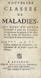 [Boissier Sauvages de La Croix François)]. Nouvelles Classes de Maladies, qui dans un ordre semblable à celui des Botanistes, comprennent les genres & les especes de toutes les Maladies, avec leurs signes & leurs indications. Avignon, B....
